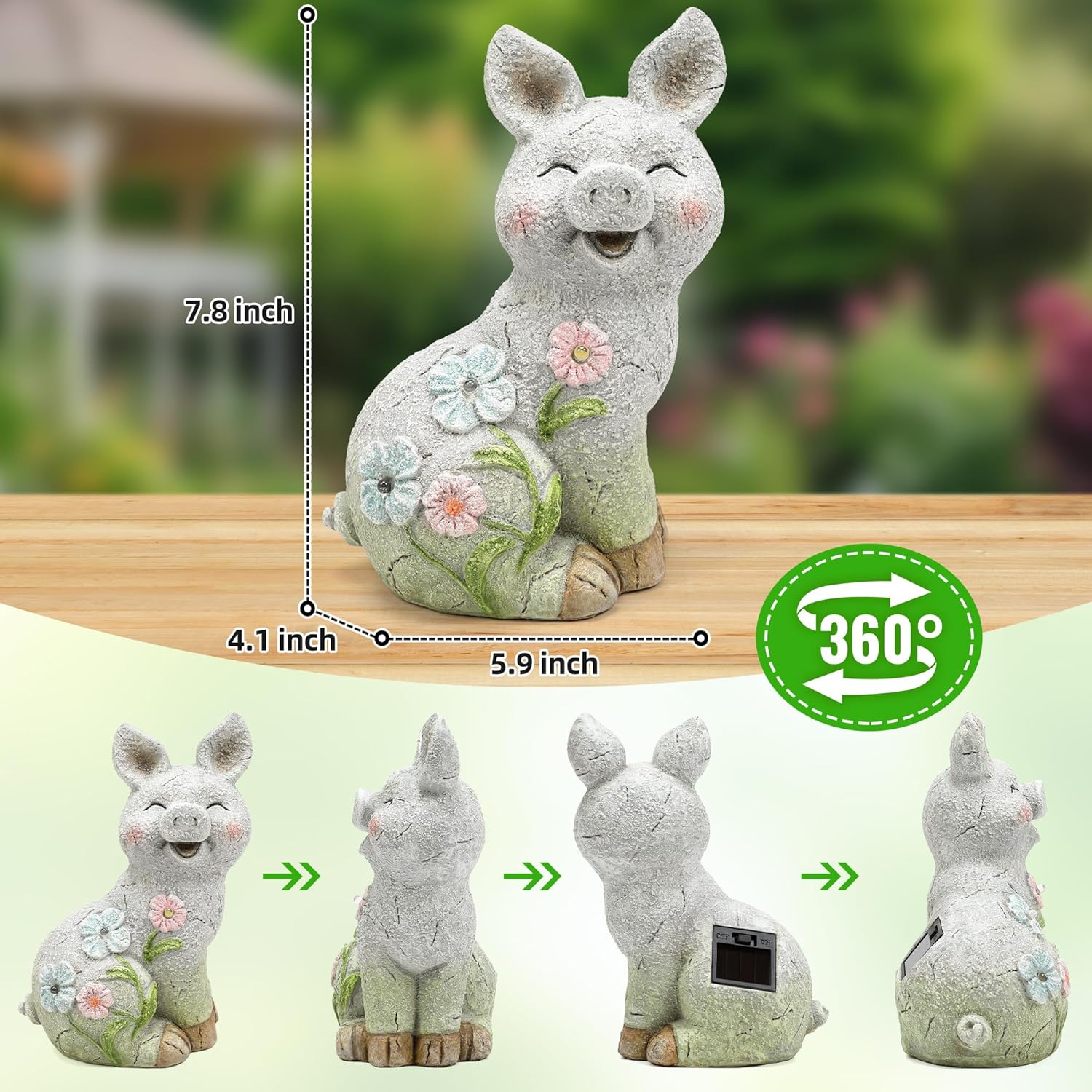 Leekung Solar Pig Statues Garden Decor,Outdoor Statue Sculpture with Led Lights,Solar Garden Decorations Pig Figurines for Patio,Balcony,Yard,Lawn,Unique Housewarming Birthday Gifts for Mom Women