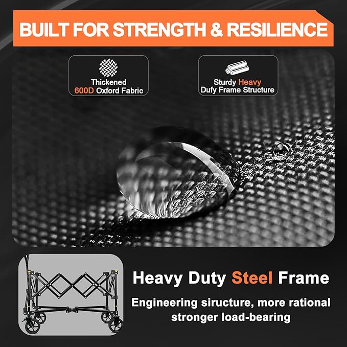 • AFTER SALES - EASY TO ASSEMBLE - COLLAPSIBLE WAGON: The wagon will come with an instruction manual when you receive it, so even a child can easily assemble it easier than assembling blocks, and it can be put into use at any time.