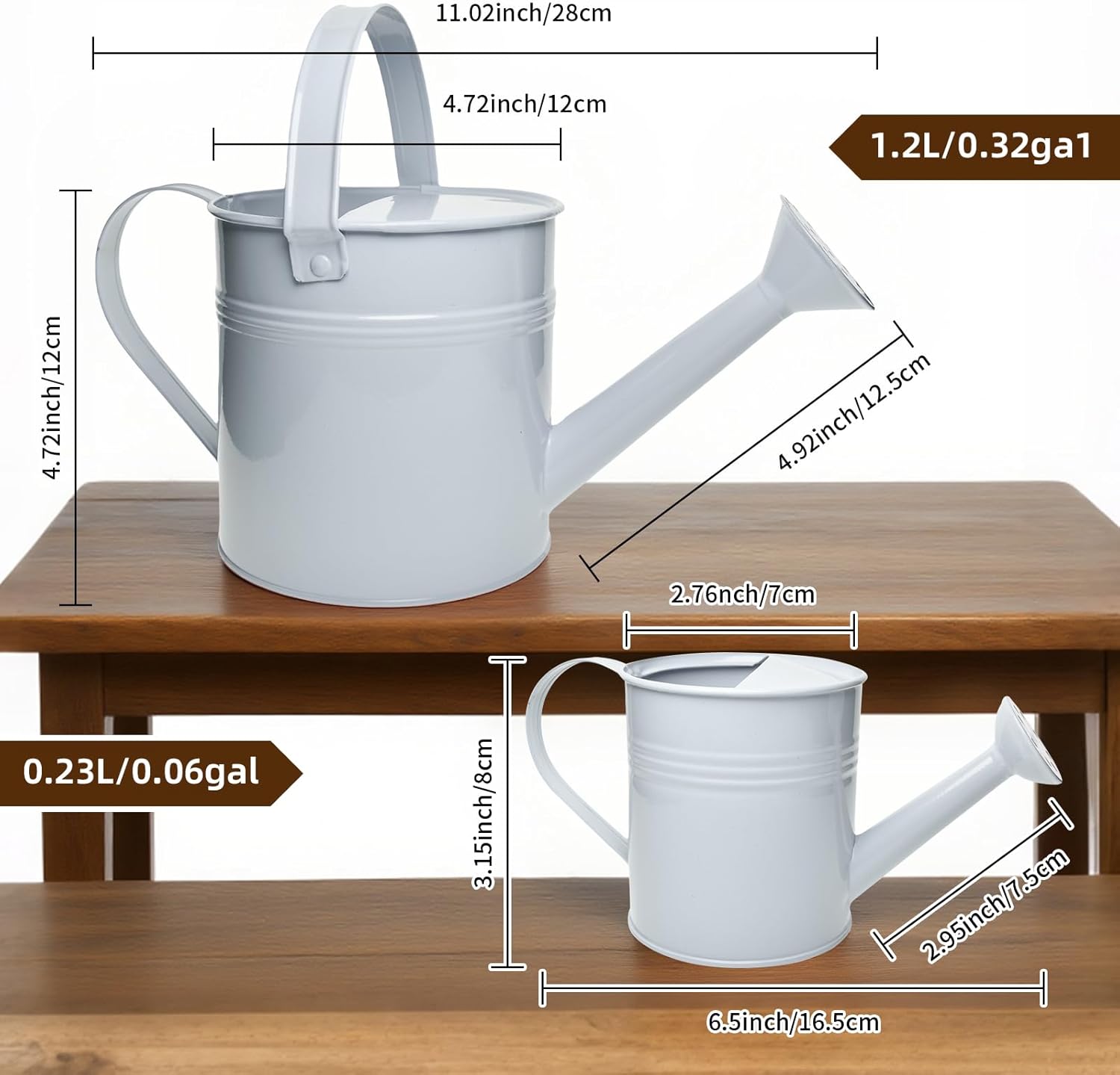 • DUAL SIZE SET: Includes a large 1.2L/0.32gal watering can and small 0.23L/0.06gal companion can, perfect for both indoor and outdoor plant care needs