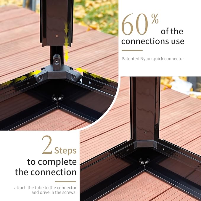 • Upgraded Patented Quick Connector: 60% of the connections use connector, used for over 10 years. screws are pre-embedded, saving installation time. 3 DIY enthusiasts can erect in 8 hours by saving half time of others