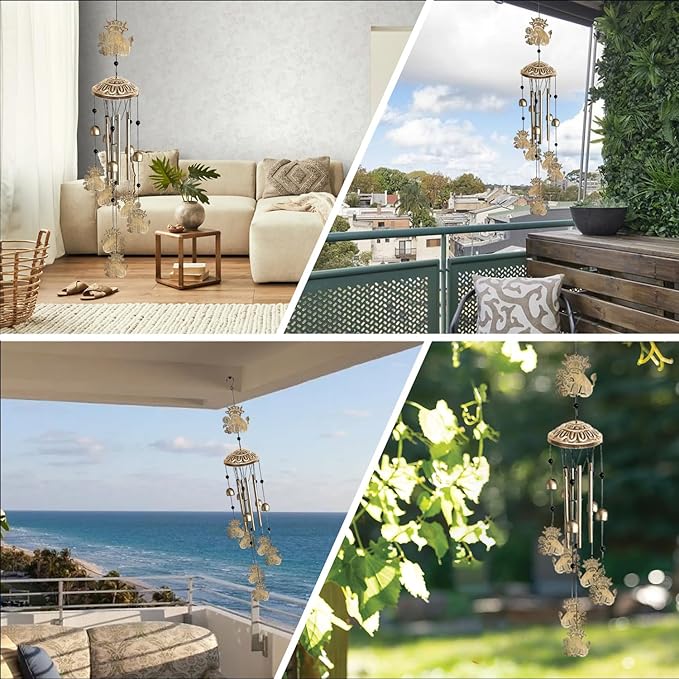 • Soothing & Crisp Melodies: As the wind blows, the 4 metal tubes and 5 bells of this metal wind chime produce a series of soothing, crisp, and pleasant tones. These gentle melodies add a sense of tranquility to your space, helping you unwind and enjoy a peaceful atmosphere