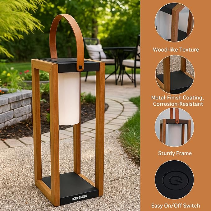 • Rustic Design with Portable Handle & All-Weather Durability Crafted from weatherproof steel with a distressed finish and a convenient built-in handle, this 22.83-inch solar lantern blends farmhouse charm with modern resilience. The handle allows easy carrying and placement, making it versatile as a portable lamp, tabletop accent, or pathway light—perfect for adding style and functionality to any patio, garden, or camping trip.