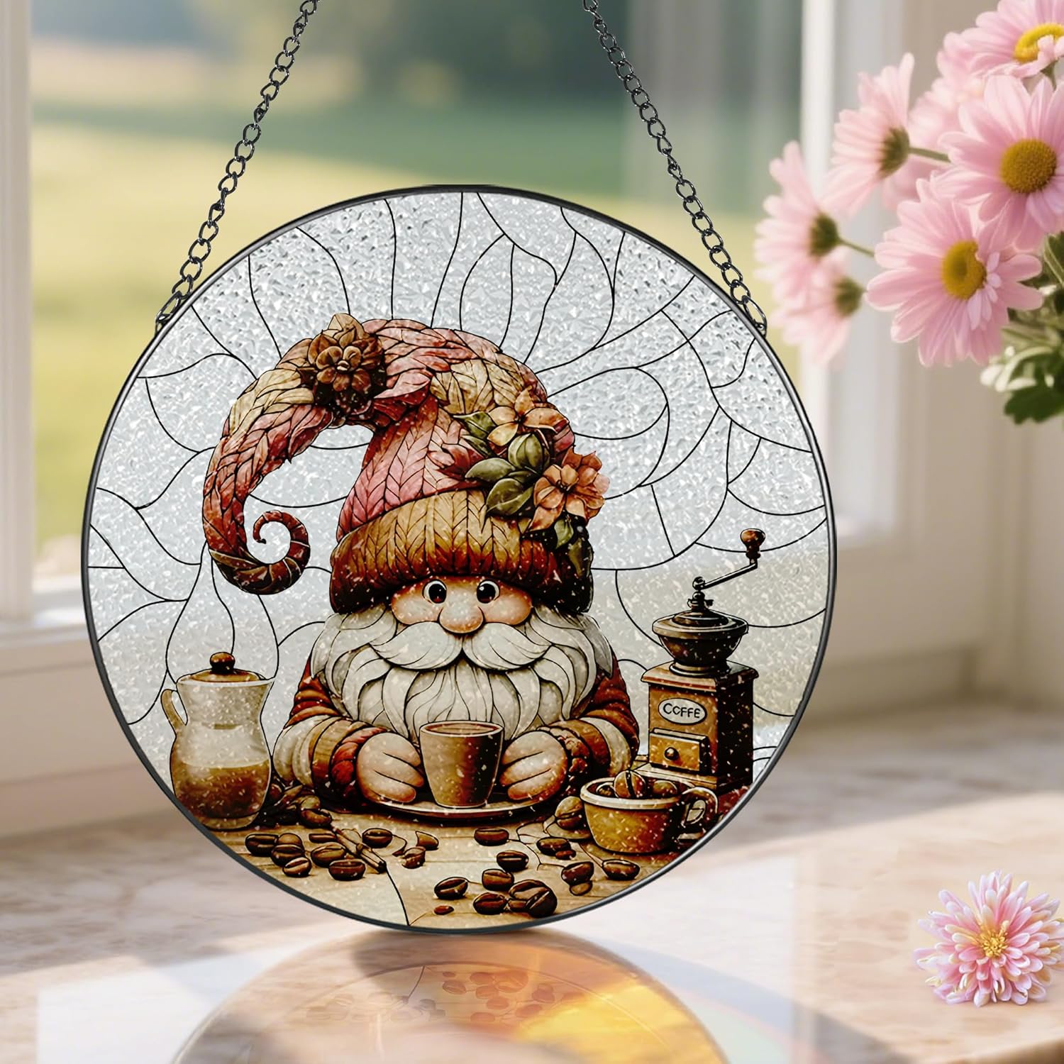 Stained Glass Window Hanging, Pauyadu Charming Gnome Sun Catchers, Stained Glass Suncatcher, Gnome Decor Gifts for Women, Mom, Grandma, Wife - 8 Inch