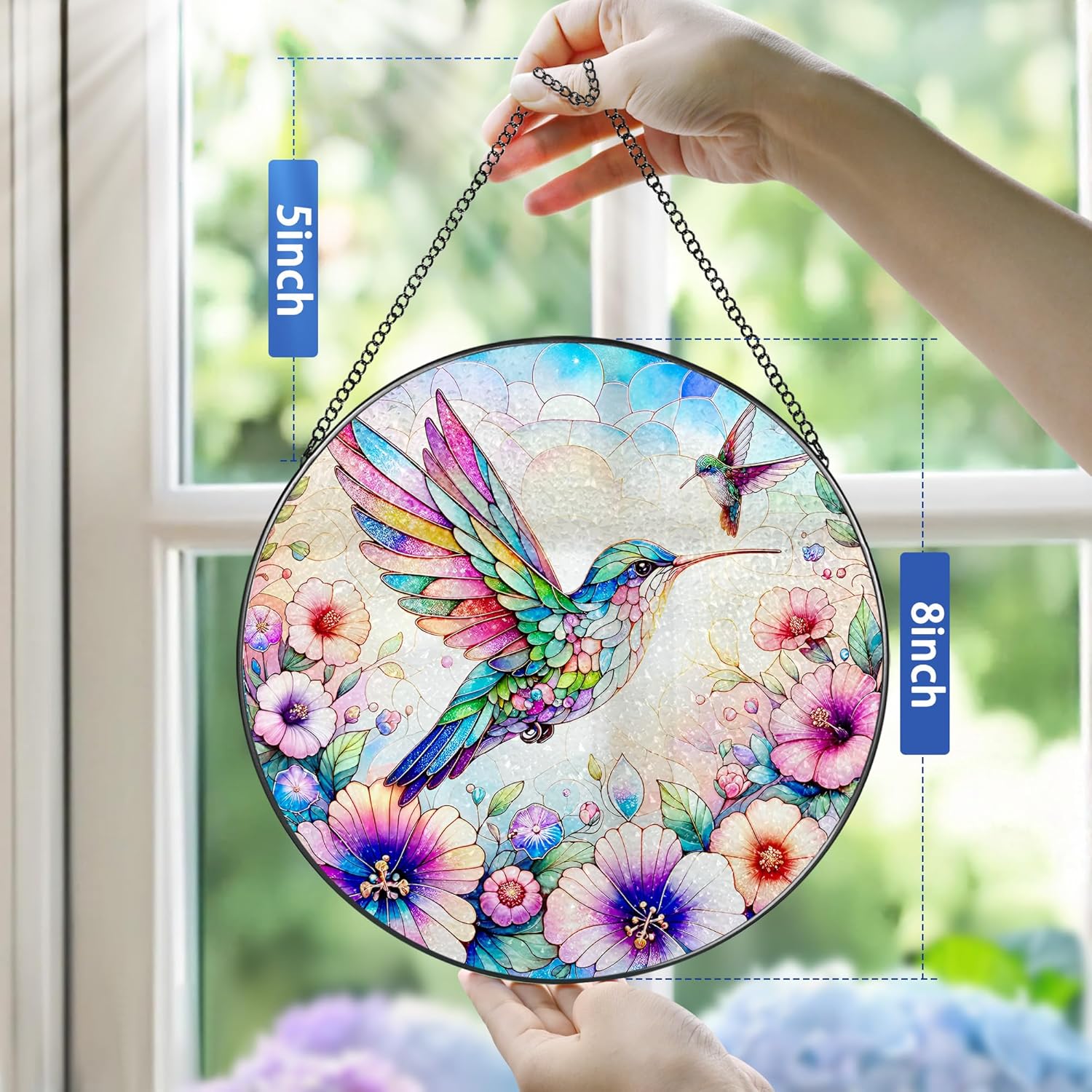 Stained Glass Window Hanging, Pauyadu Hummingbird Sun Catchers, Stained Glass Suncatcher, Hummingbird Decor Gifts for Women, Mom, Grandma, Wife, Lovers and Couple - 8 Inch