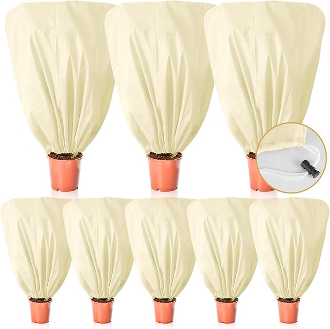 8 Pcs Plant Covers Frost Protection Bag 47" x 31.5" Winter Reusable Plants Jacket with Drawstring Shrub Protection Wraps Bags Frost Blanket for Winter Outdoor Garden Plants