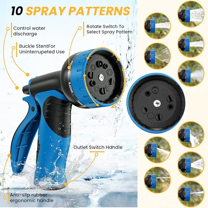 - 【10 Patterns of Spray Nozzle】- Comes with a multi-function nozzle that provides 10 different watering modes, ranging from a gentle mist for delicate flowers to a powerful jet for cleaning hard surfaces. This allows you to easily meet all your watering needs, whether it's for watering the garden, washing the car, or flushing the patio. 75 ft length, being the most popular size option, can easily cover your entire yard, offering great convenience for all your outdoor and indoor watering and cleaning needs.