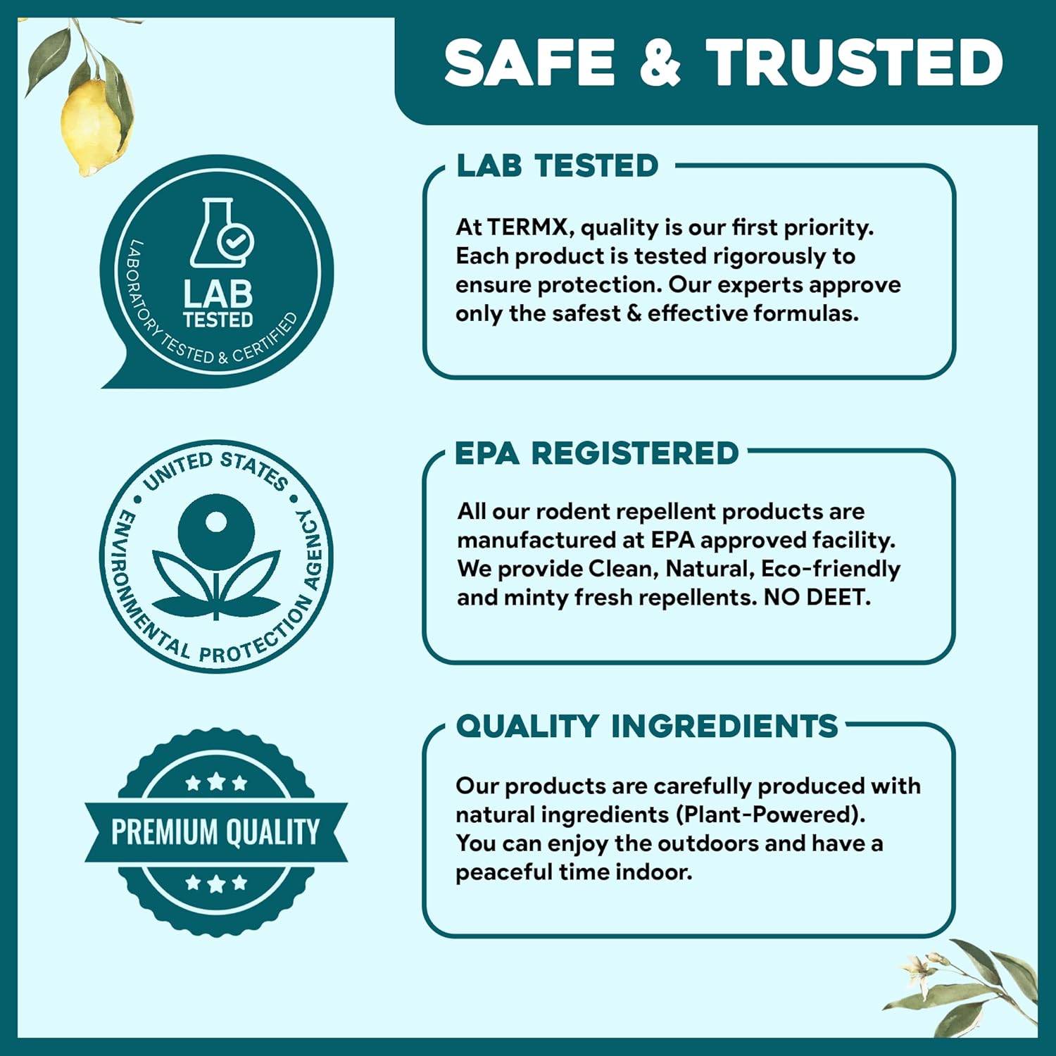 • FRESH SCENT: Mosquito repellent sprays feature a refreshing lemon fragrance, unlike other harsh chemical repellents, Termx natural mosquito repellent for skin provides air freshener feeling, repel lemon eucalyptus insect repellent travel size.