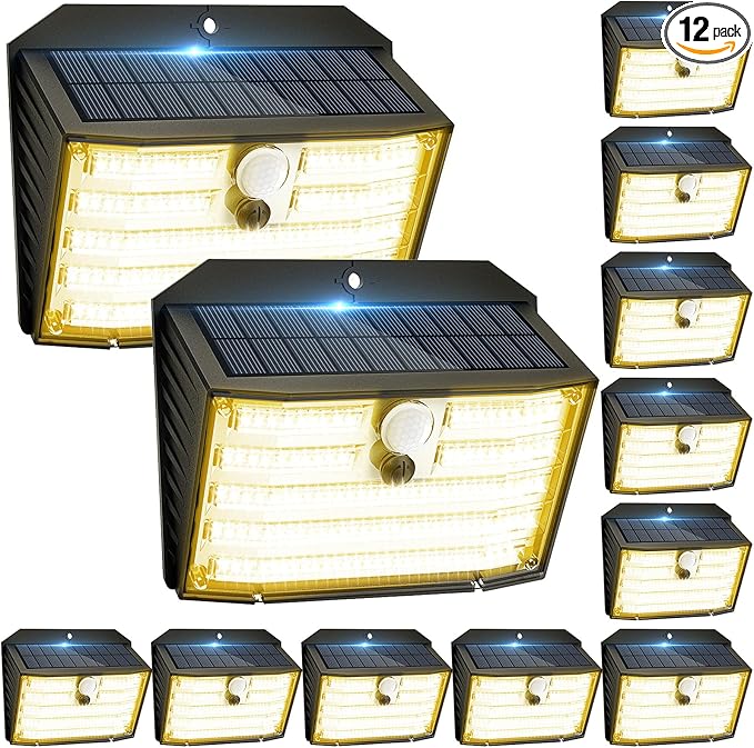 [12 Packs] Solar Motion Lights Outdoor, Ultra Bright Solar Fence Lights with Motion Sensor, IP65 Waterproof Security Light 3 Modes, 270ยฐ Lighting Angle, Wall Lights for Deck Patio Fence Garage Door