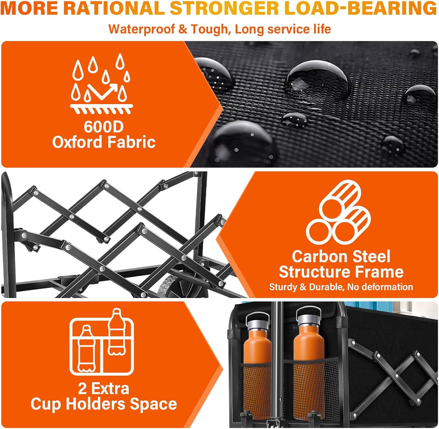• Upgraded All-Terrain Wheels: Advanced nano-rubber injection wheels provide strength and durability, gliding smoothly over sand, grass, gravel, and uneven surfaces. Built-in cup holders offer convenient storage for drinks or small items