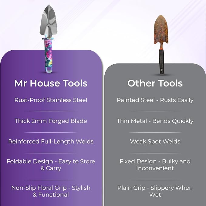 • Durable Stainless Steel Tools: Rust-resistant stainless steel strong enough for digging compact soil yet light for daily use. Perfect for backyard projects, pots, raised beds, and beginner gardeners.