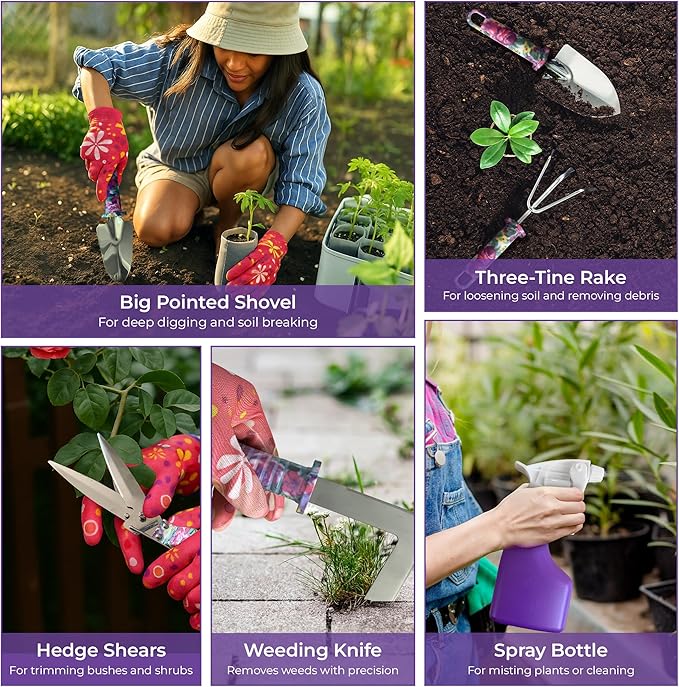 • Thoughtful Gift for Garden Lovers: A complete gardening set for women, beginners, or backyard gardeners. Ideal gift for birthdays, Mother’s Day, Christmas—combining beauty, durability, and utility.