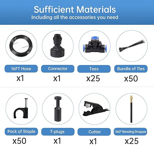 • 10-Minute Setup, No Tools Needed - Snap-fit connectors and included cutters/ties make installation a breeze. Spend 10 minutes setting it up, then relax while your plants water themselves