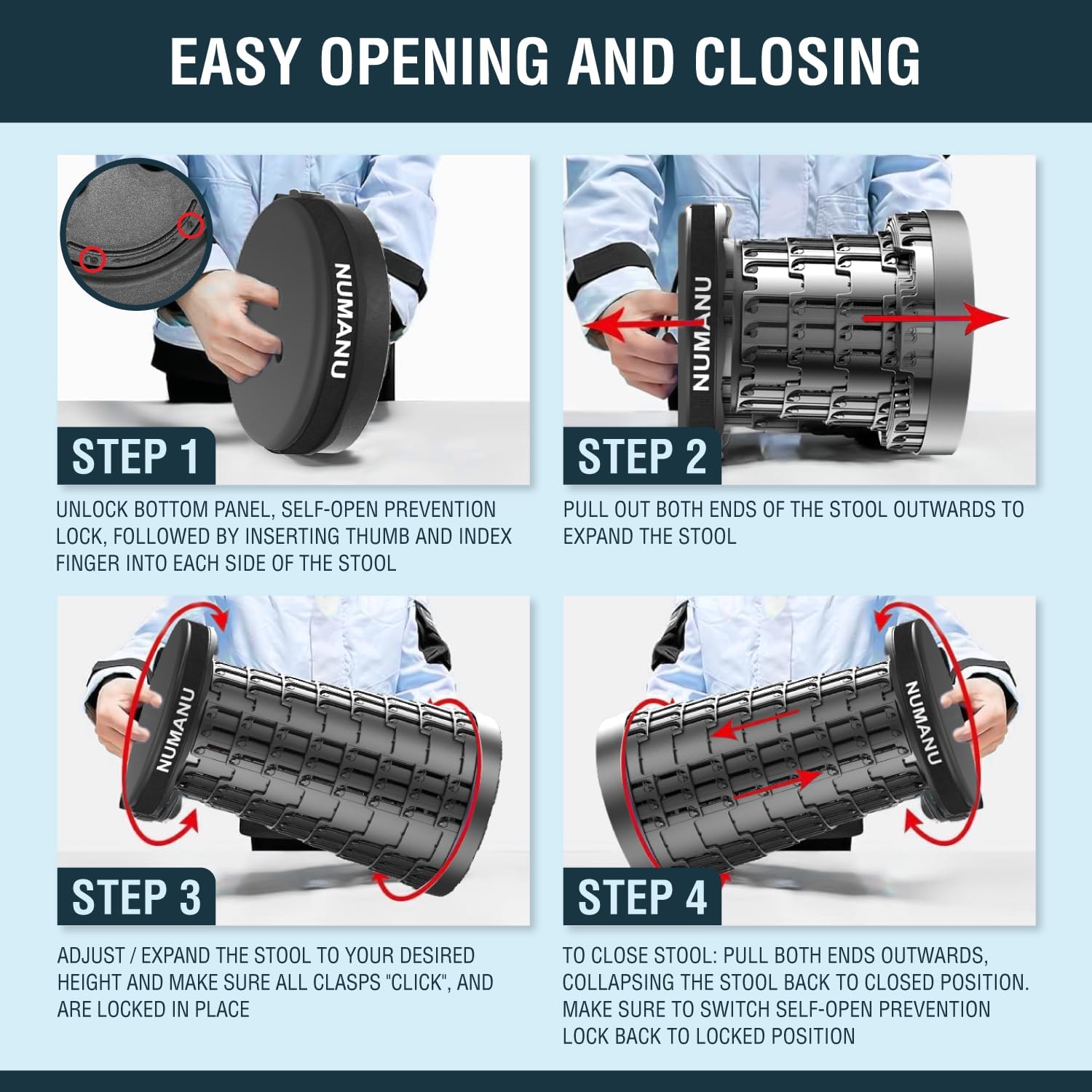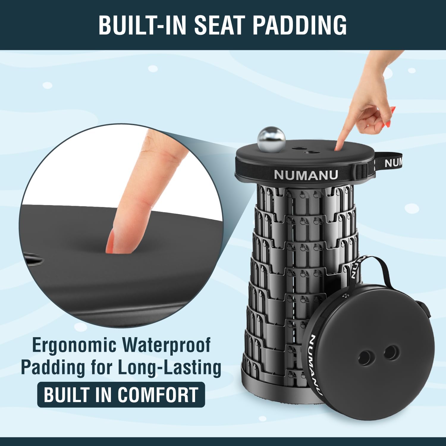 • 🔥【Endless Ways to Use】NUMANU Portable Telescoping Collapsible Stool has many use cases such as: Camping, Hiking, Waiting in Line, Live Concert Events, Plumbing, Construction, DIY/Fixing, Fishing, Gardening, Resting, Travel, Commute, Bus, Train, Subway and More...