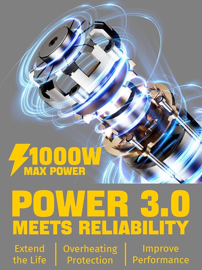 • โšก๏ธ ๐—ฆ๐—ง๐—ฅ๐—ข๐—ก๐—š ๐—ฃ๐—ข๐—ช๐—˜๐—ฅ ๐—™๐—ข๐—ฅ ๐—ง๐—ฅ๐—˜๐—˜ ๐—–๐—จ๐—ง๐—ง๐—œ๐—ก๐—š: 1000W brushless motor delivers bursts up to 6300 RPM (219 ft/s chain speed) for rapid, clean cuts. Overheat protection safeguards motor during extended high-temp operation.