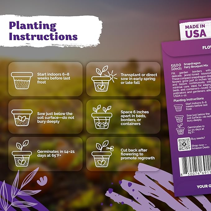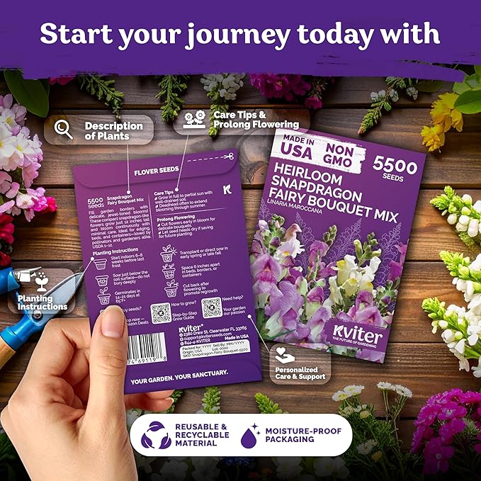 • Generous Mix & Value: 5500 snapdragon seeds bulk fill wildflower-style seed packets, edging paths or small spaces with heirloom seeds that self-sow and return vibrant blossoms next year.