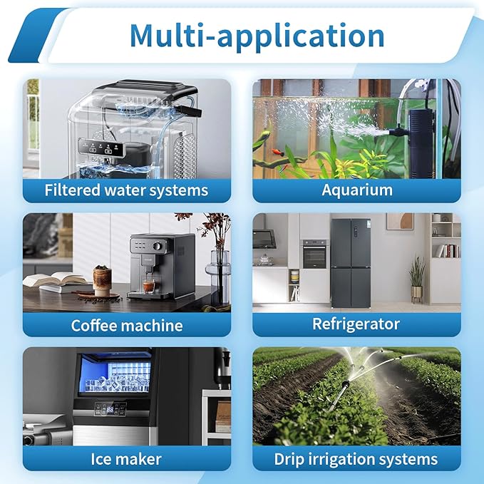 • 【Versatile Multi-Scenario Compatibility】 Our 1/4" water line fittings are the perfect solution for RO/DI systems, refrigerators, ice makers, aquariums, hydroponics, coffee dispensers, drip irrigation, and even pool slide water line maintenance and parts replacement.