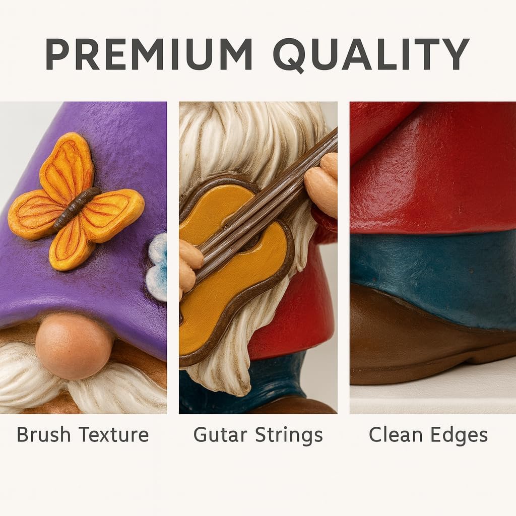 • Charming Guitar-Playing Gnome – Features a joyful gnome strumming a guitar, bringing music and magic to your space with his playful personality.