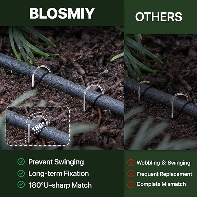 • 【Effortless Installation】precision beveled incision on sharp tips enables landscape pins to pierce virtually effortlessly into soft or compacted soil.These garden fabric staples quickly lock down materials like weed barrier fabric, drip irrigation tubing, and poultry fence in seconds.