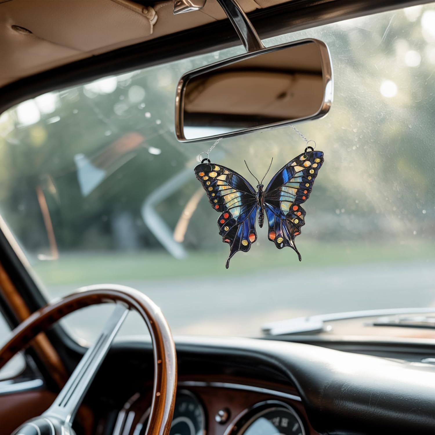 Midnight Butterfly Acrylic Suncatcher Stained Glass Effect Window Car Hanging Christmas Ornament Indoor Outdoor Decor Garden Sun Catcher Panel for Butterfly Lover for Women Mom Grandma