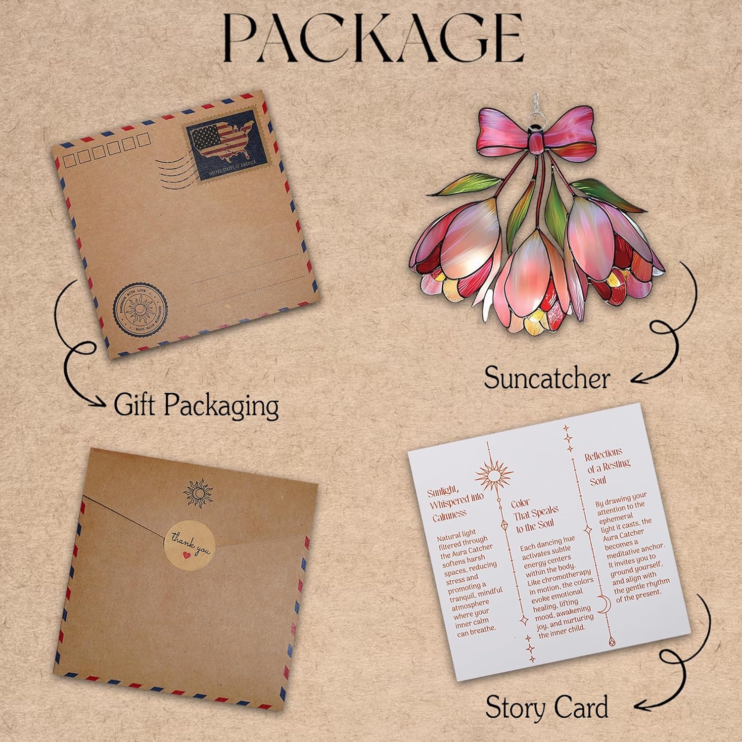 Pink Bell Flower Acrylic Suncatcher Stained Glass Effect Window Car Hanging Christmas Ornament Indoor Outdoor Decor Garden Sun Catcher Panel Gifts for Flower Lover for Women Mom Grandma