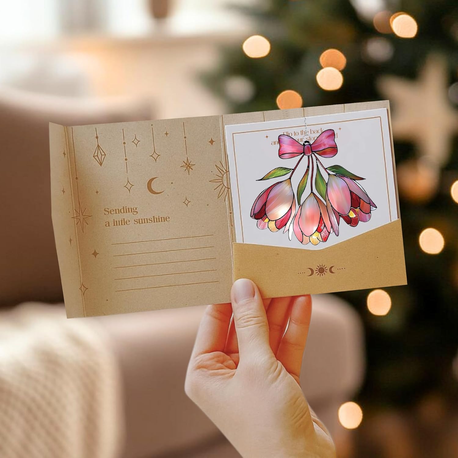 Pink Bell Flower Acrylic Suncatcher Stained Glass Effect Window Car Hanging Christmas Ornament Indoor Outdoor Decor Garden Sun Catcher Panel Gifts for Flower Lover for Women Mom Grandma
