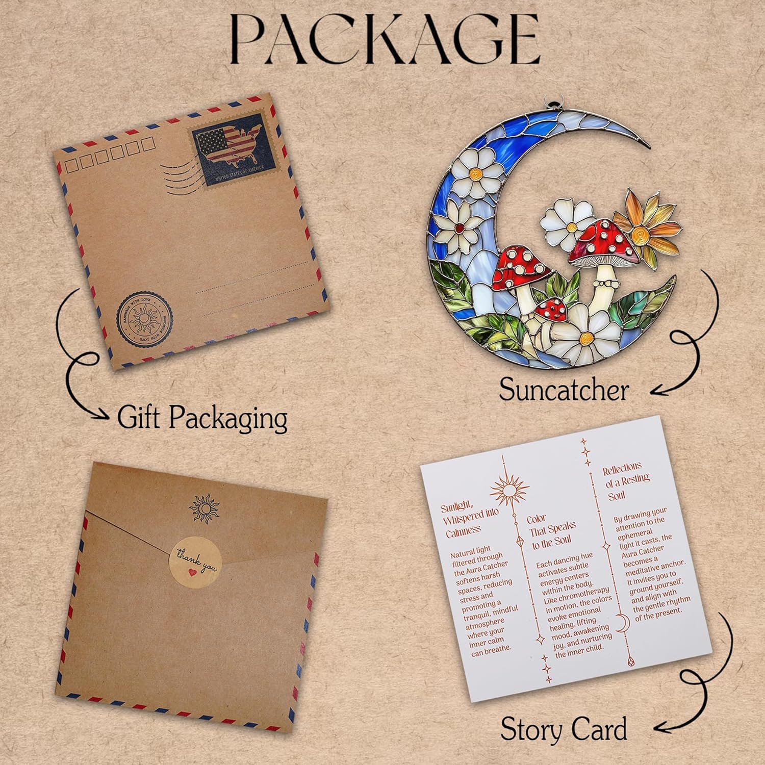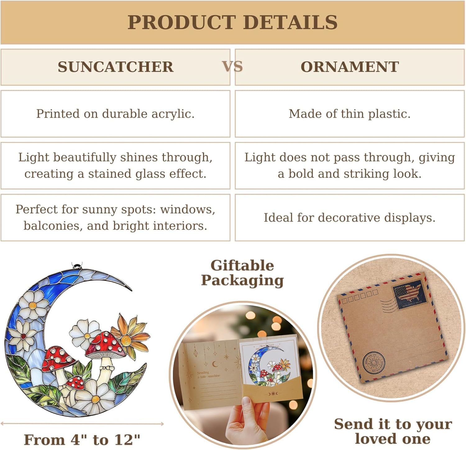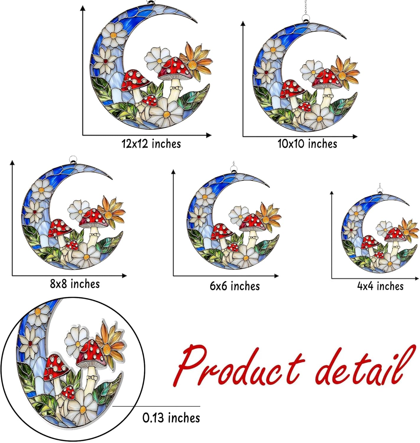 Mushroom Crescent Moon Boho Acrylic Suncatcher Stained Glass Effect Window Car Hanging Christmas Ornament Indoor Outdoor Decor Garden Sun Catcher Gifts for Bohemian Lover Gift for Women Mom Grandma