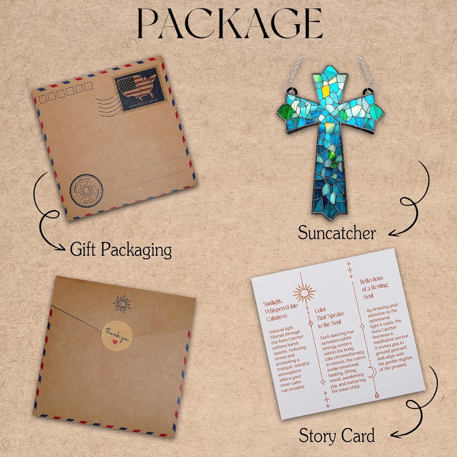 Mosaic Cross Acrylic Suncatcher Stained Glass Effect Window Car Hanging Christmas Ornament Indoor Outdoor Decor Garden Jesus Sun Catcher Panels for Family Christmas Jesus Gift for Women Mom Grandma