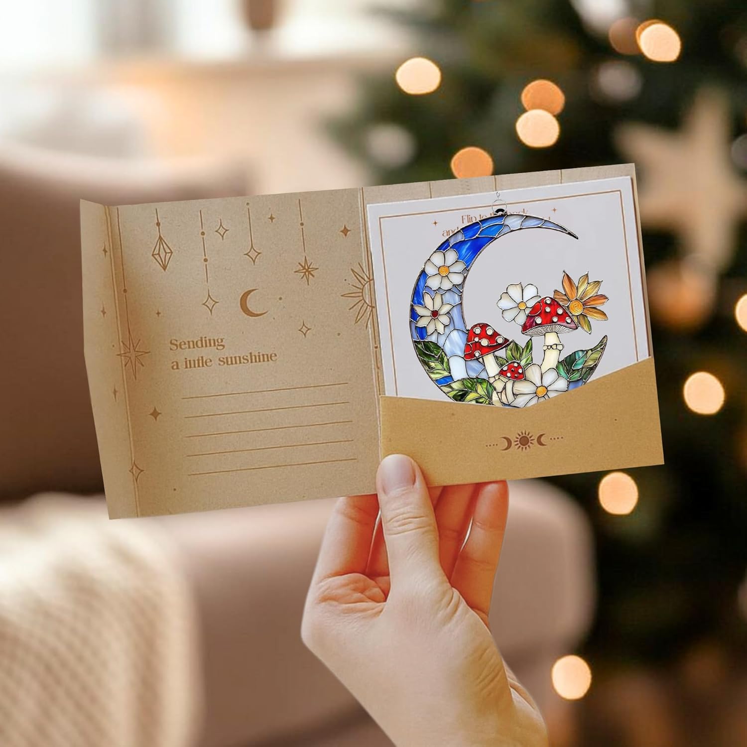 Mushroom Crescent Moon Boho Acrylic Suncatcher Stained Glass Effect Window Car Hanging Christmas Ornament Indoor Outdoor Decor Garden Sun Catcher Gifts for Bohemian Lover Gift for Women Mom Grandma