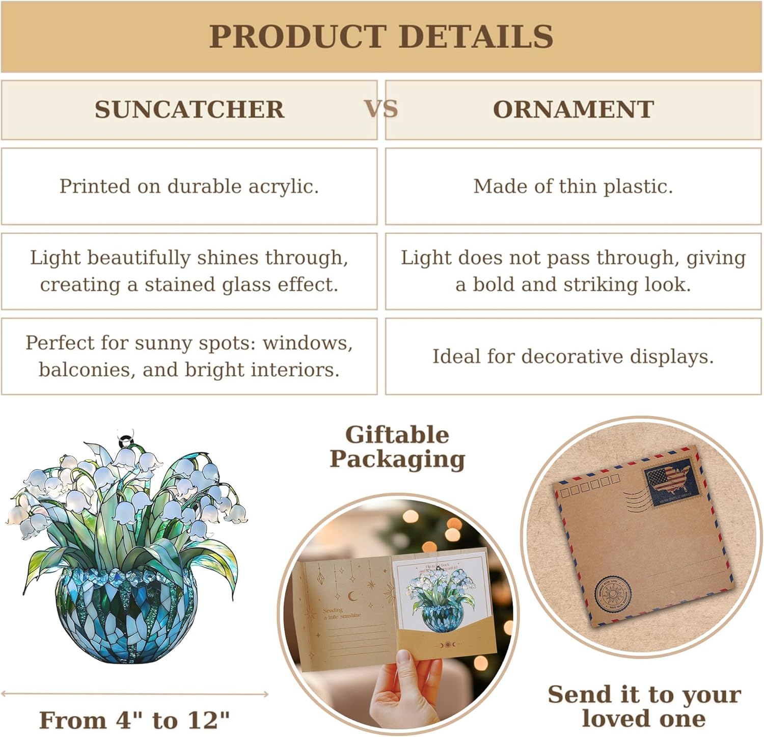 Lily of The Valley May Month Flower Acrylic Suncatcher Stained Glass Effect Window Car Hanging Christmas Ornament Indoor Outdoor Decor Garden Sun Catcher for Flower Lover Gift for Women Mom Grandma
