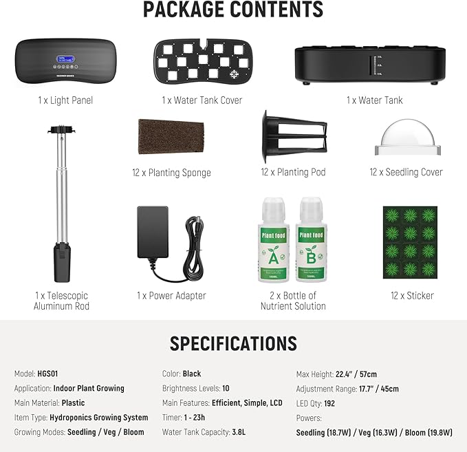 • 【Introducing NEEWER BASICS】 Simple and practical, NEEWER BASICS is an economical product line that focuses on essential functions and designs, without unnecessary extras and materials. The HGS01 is an efficient and simple hydroponic growing system that can nurture up to 12 plants simultaneously, with 3 growing modes, adjustable lighting, and a telescopic design