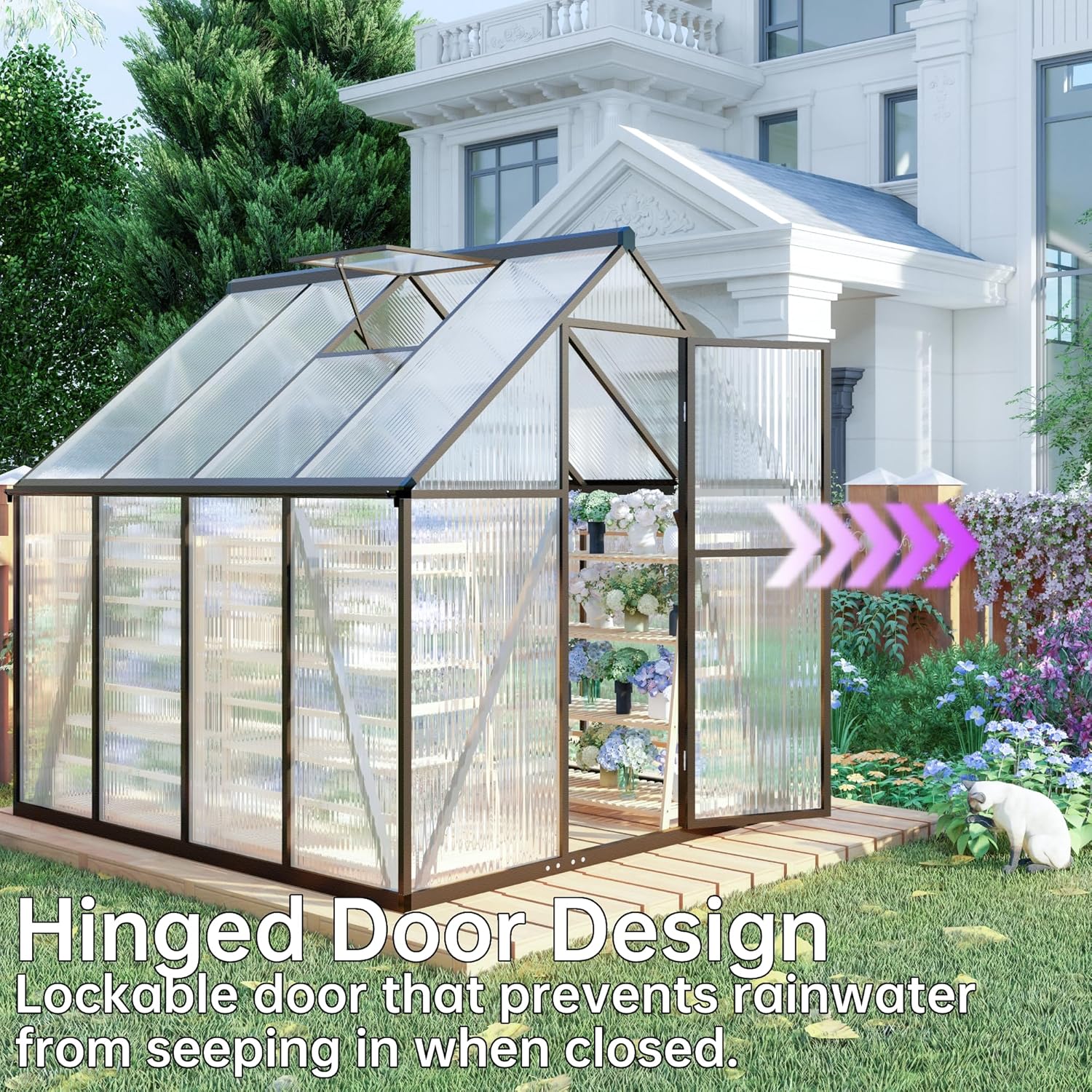 CQZY 6x8 FT Walk-in Greenhouse for Outside,Dark Gray