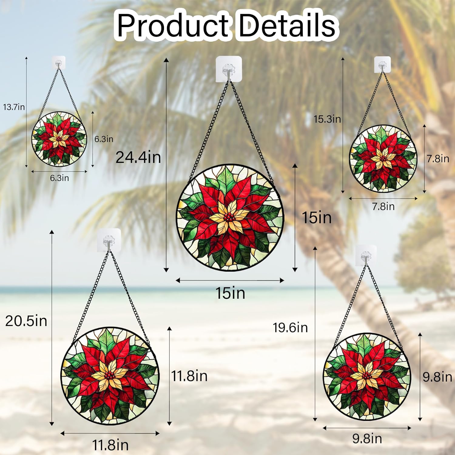 Stained Glass Window Hanging - Red Poinsettia Birth Flower Sun Catcher for Door Garden Home Decor Suncatcher Christmas Mother's Day Birthday Gifts for Women Men Mom Girl Nana Friend 7.8 in