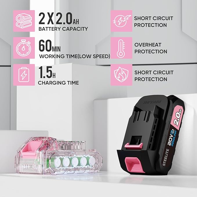 Steelite Leaf Blower Cordless with 2 Battery and Charger, 20V Electric Leaf Blowers, Lightweight Handheld Blower for Lawn Care, Patio, Garden, Pink