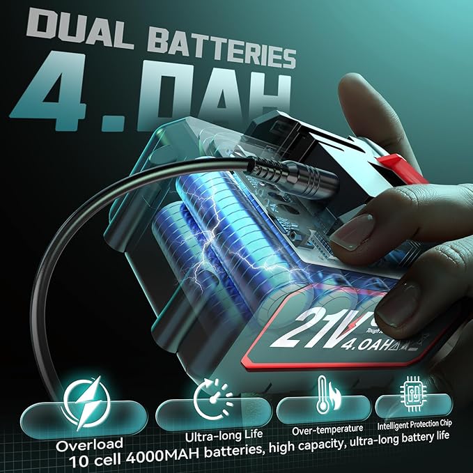 • Premium 4Ah Battery & Fast Charging: Grade A cells deliver stable power for extended tasks last 20mins runtime. Get full power faster with included charging cable.