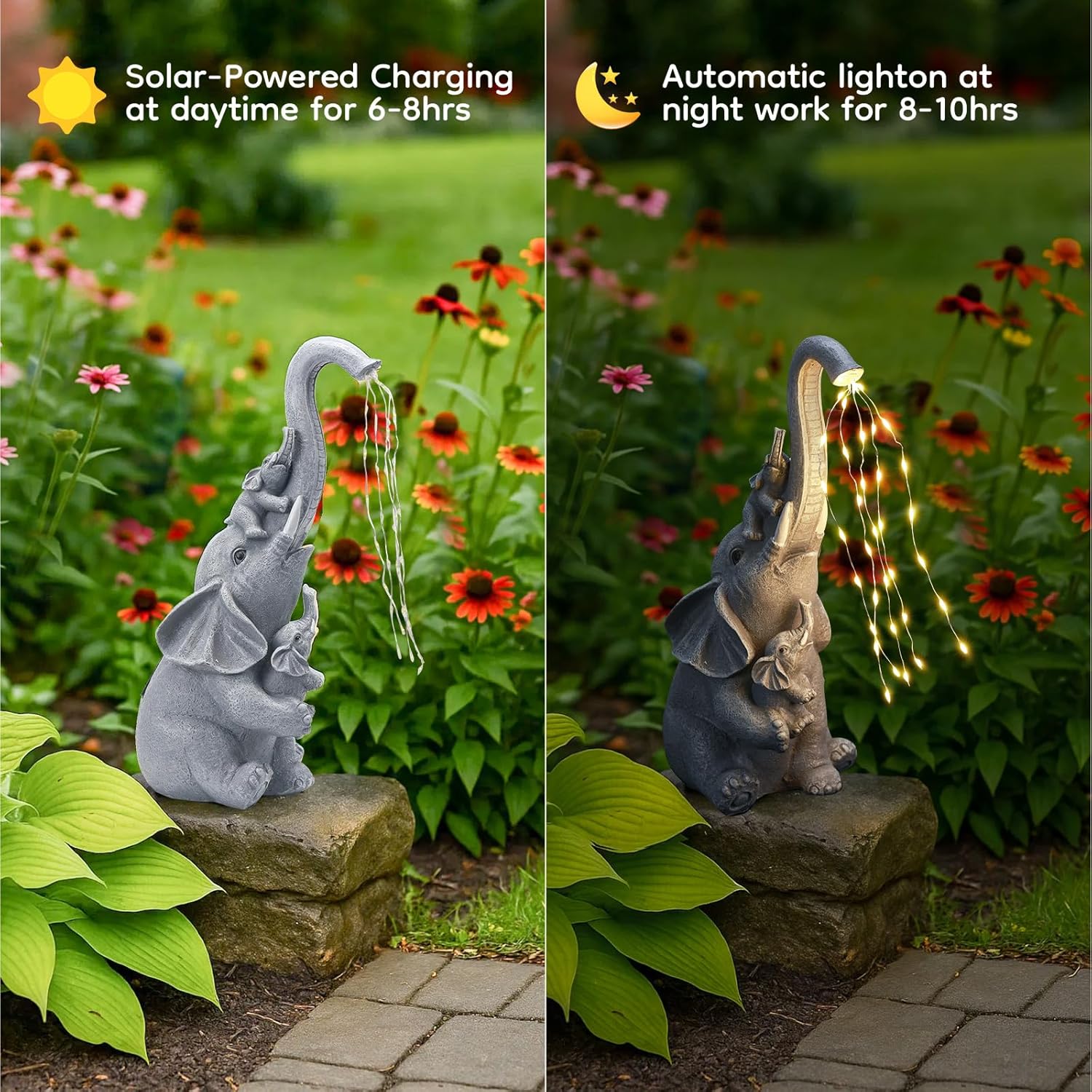 • 🎁【Zero-Mess Waterless Gift】 #1 holiday surprise! This elephant sets up in 60 seconds – just plant in sun. Kids adore the splash-free light show, adults love no-moss maintenance. Perfect for balcony , garden, lawn,front porch and dorms!
