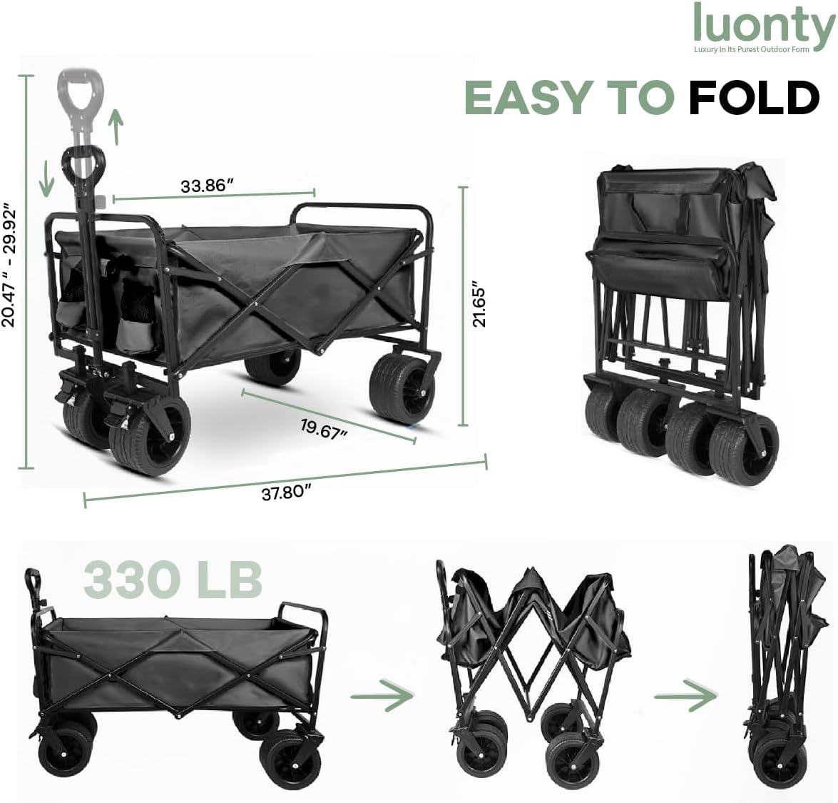 Collapsible Utility Wagon Cart, Heavy Duty Folding Garden Cart with Wheels, Black Steel Frame, 150 L Capacity - 330 LB Capacity