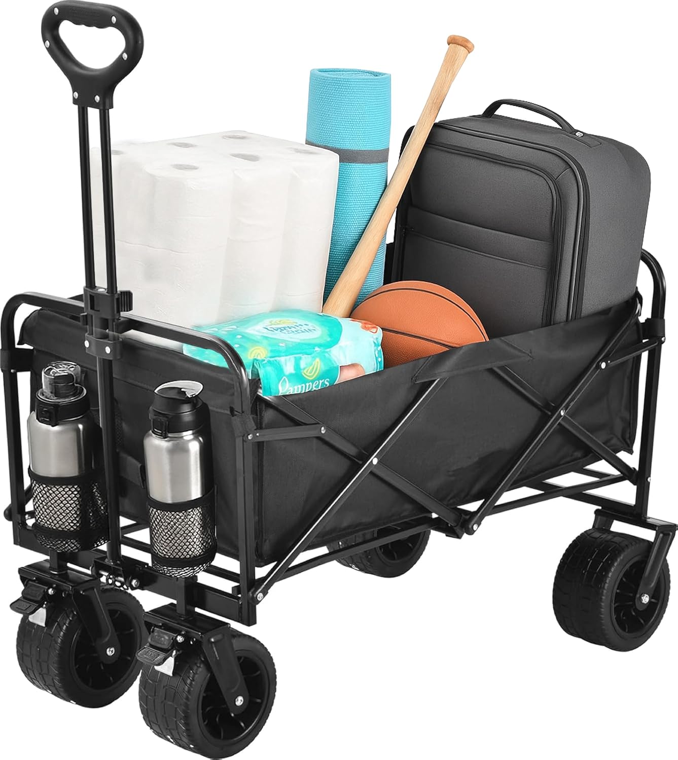 • HEAVY-DUTY CAPACITY: Sturdy steel frame construction supports up to 265 pounds of cargo, perfect for hauling groceries, camping gear, beach equipment, and gardening supplies