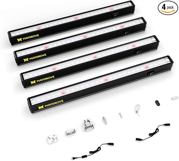 • Energy-Efficient, High Output: Each 1 ft grow light strip uses just 7 W (28 W total per 4-pack) with 120 LEDs totally while delivering high PPFD for better light coverage; With optimized light distribution, these LEDs maximize efficiency and provide targeted support from seedlings to fruit