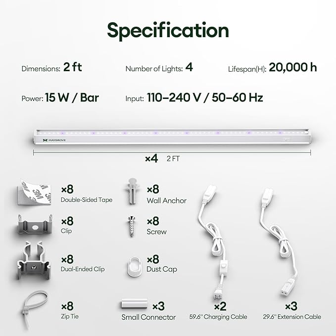 • Quick, Flexible Setup Anywhere: The 29.5 in connecting cord gives you extra reach for easier placement; With four mounting options—including quick-clip mounts—you can easily attach the light to plant shelves, racks, or hang it as side lighting; Perfect for any indoor growing setup