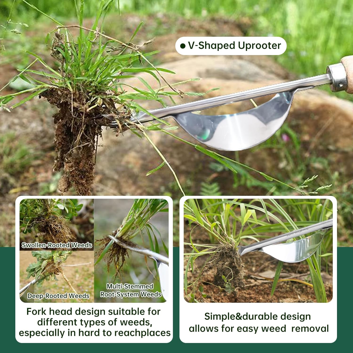 • High Quality Material - Our garden tool for weeding is built to last, made with sturdy stainless steel and high quality natural wood that is both sturdy, polished, so you can count on this gardening tool to stay in great shape for years to come.