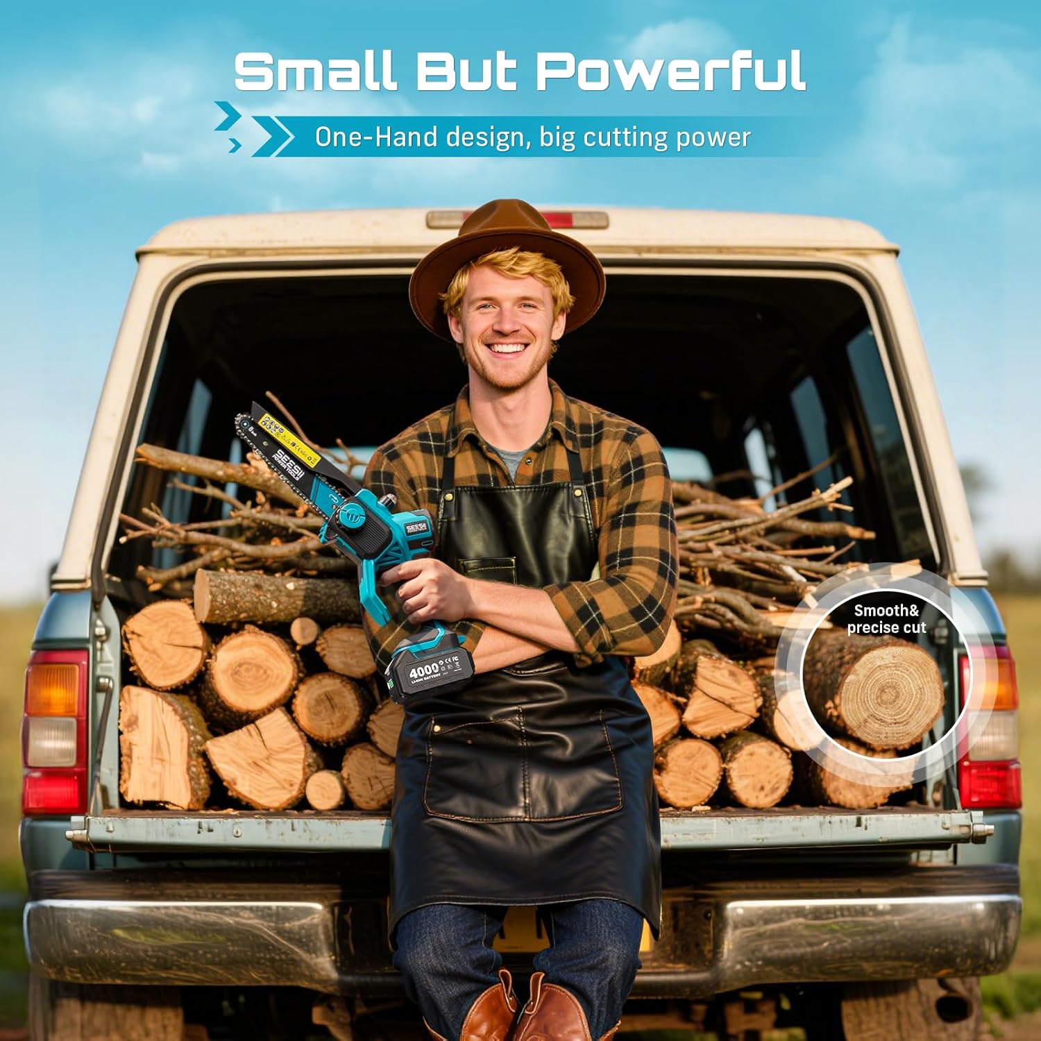 • [Dual Battery System for 150+ Continuous Cuts]: Never stop mid-task due to a dead battery. This battery-powered chainsaw kit includes TWO 4000mAh large-capacity batteries. With a single charge, you can achieve over 150 cuts. When one battery depletes, simply swap in the fully charged second one for uninterrupted work—maximizing your efficiency and eliminating frustrating downtime.