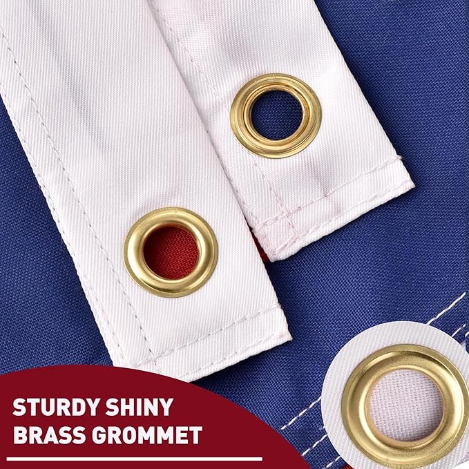 • 【Enhanced Construction】Designed for outdoor use, the United States flag includes real brass grommets and double-needle lock stitch sewn stripes for added strength. Reinforced by heavyweight quadruple canvas at the end, this flag is built with durability in mind and features four rows of stitches on the fly edge for longevity