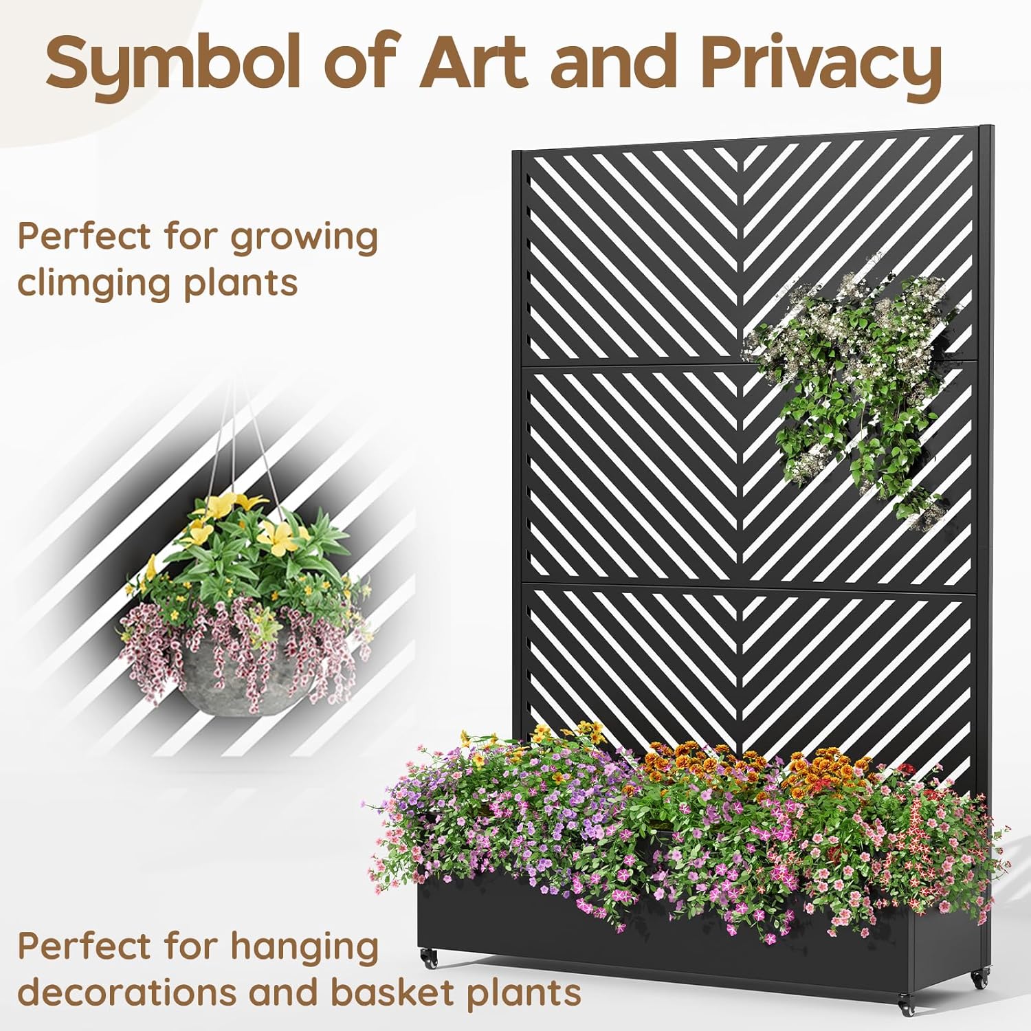 - Multi-Functional Metal raised garden bed with Trellis: This garden bed with Trellis serves as an elevated outdoor garden bed, trellis, and privacy screen—perfect for growing climbing plants, vegetables, and vines. The planter with trellis also doubles as a stylish outdoor privacy screen. It maximizes space efficiency while achieving aesthetic appeal and style for your garden or balcony, keeping your outdoor area neatly organized.