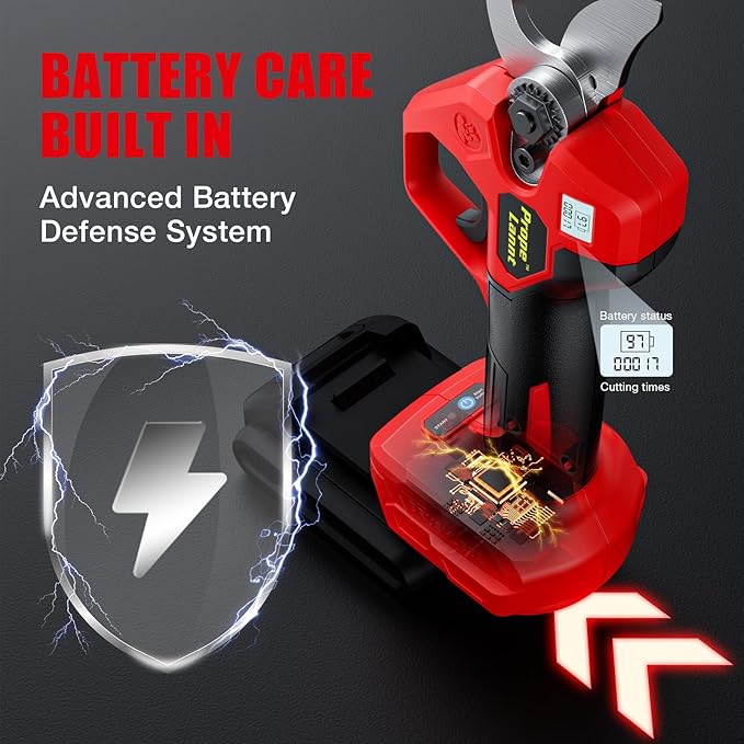 • Easy Start: Just slide in the battery, press twice to power these pruning shears for gardening, and start cutting. At just 2.1 lbs with ergonomic handles, they make pruning effortless—no setup needed, designed for easy one-handed use.