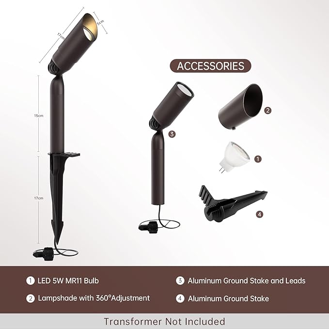 - ๐ใNo Screws Needed Landscape Lightใ - Install the 12V landscape spotlight without screwsโsimple, tool-free installation. Our low-voltage landscape light features a heavy-duty, reinforced stake design; the ground stake can be easily stepped into your desired position, and the included quick-lock connectors allow for easy connection to low-voltage wires. This hassle-free process takes just minutes to complete.
