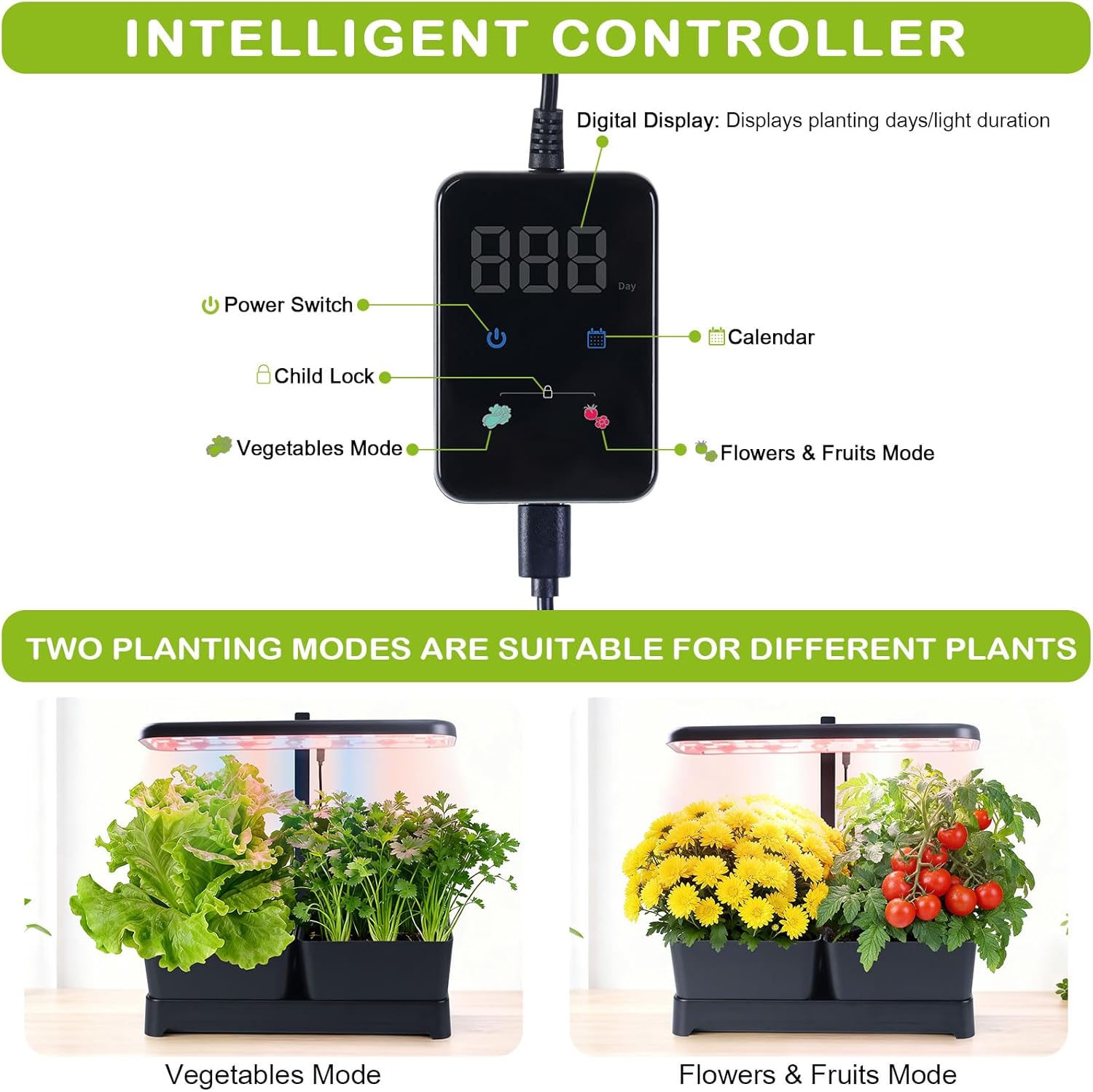 Indoor Garden Led Grow Light Planter Pots, Herb Kitchen Garden Grow Kit, Full Spectrum LED Plant Light for Plants, Height Adjustable Growing Lamp with Intelligent Controller (Black, 16*6.3*7.1 inch)