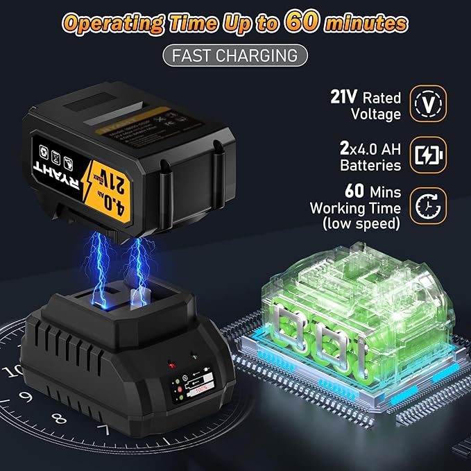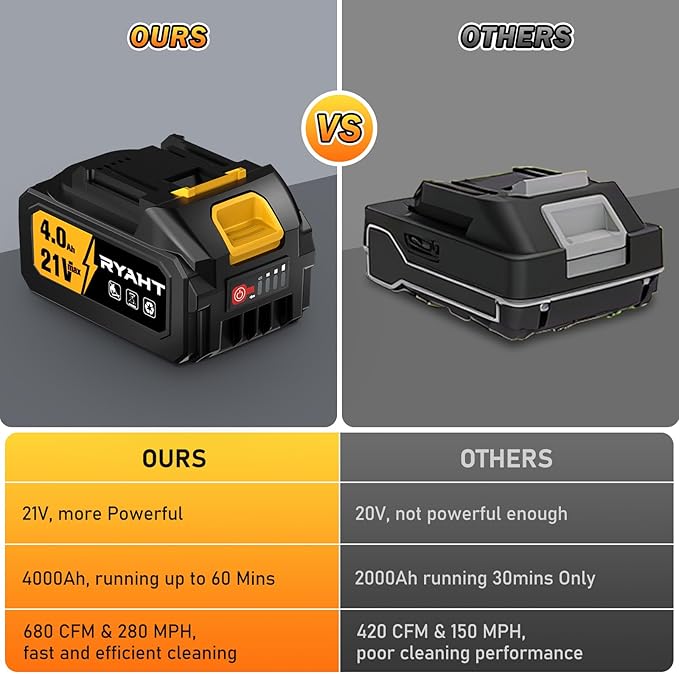• Cordless Leaf Blower: RYAHT leaf blower, say goodbye to the limitations of traditional leaf blowers with ropes. The upgraded rubber grip offers non-slip support, making your work easier and comfortable. Suitable for patio, courtyards, parks, streets, etc. Efficiently clears leaves, lawn, snow, debris, dusting.