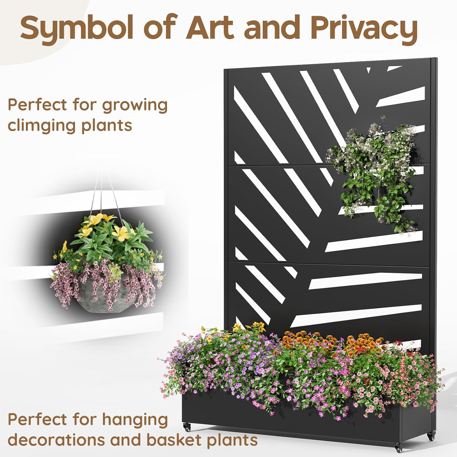 - Easy to move and superior drainage system: This vertical garden planter with trellis features 360° swivel casters, allowing you to effortlessly move the raised planter box anywhere. The privacy planters for patio also features an 11.8-inch deep planting bed with drainage holes, providing ample space for plant roots to thrive while preventing waterlogging and root rot. The planter box with trellis combine decorative appeal with practical functionality.