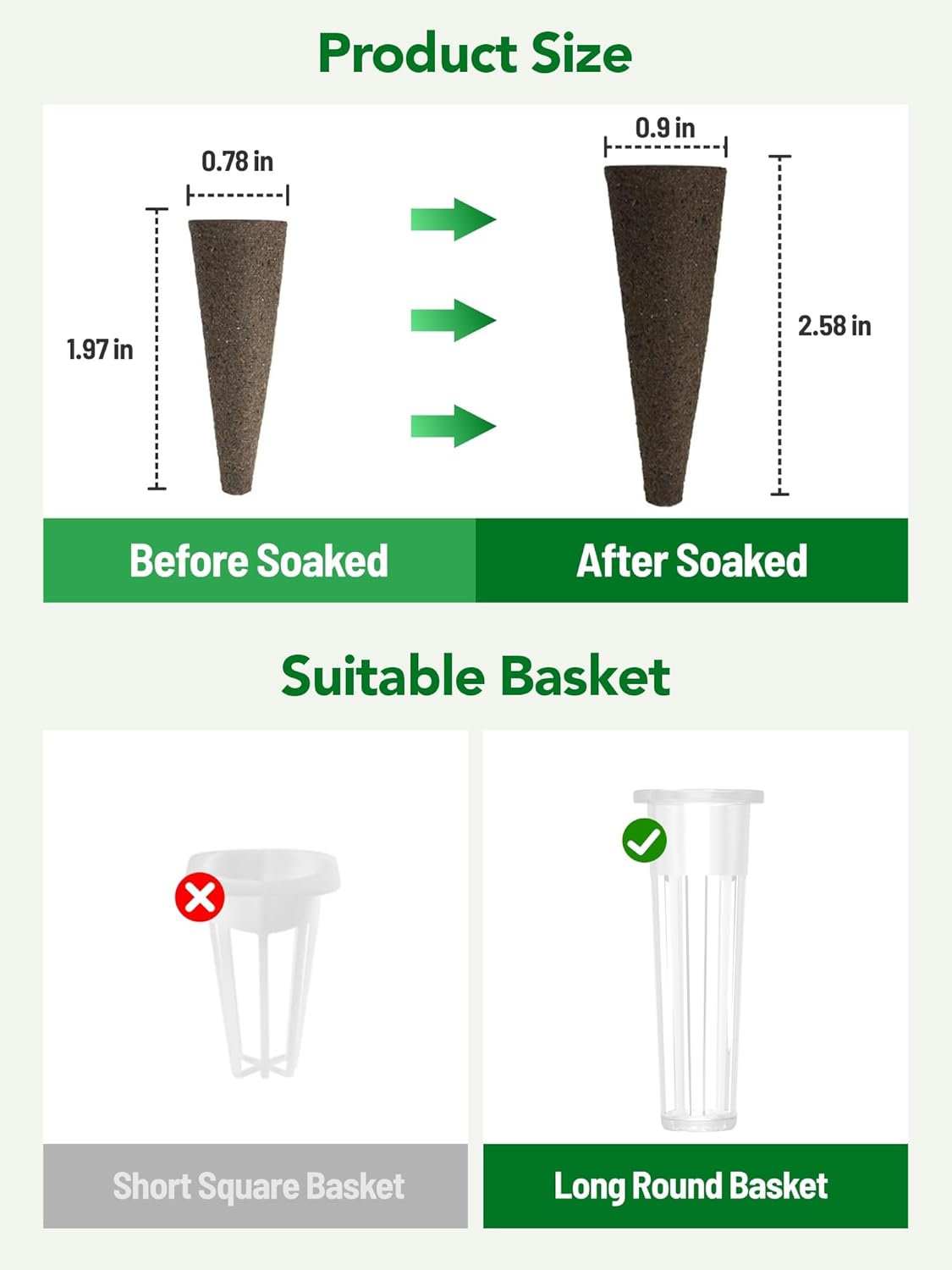 • High Compatibility: Our grow sponge size after soaking measures 0.9 inches in diameter and 2.58 inches in height, which is compatible with most hydroponics growing system like AeroGarden, Growell, Ahopegarden, and other brands. These hydroponic pods can also be used outdoors in soil to accelerate seed germination.