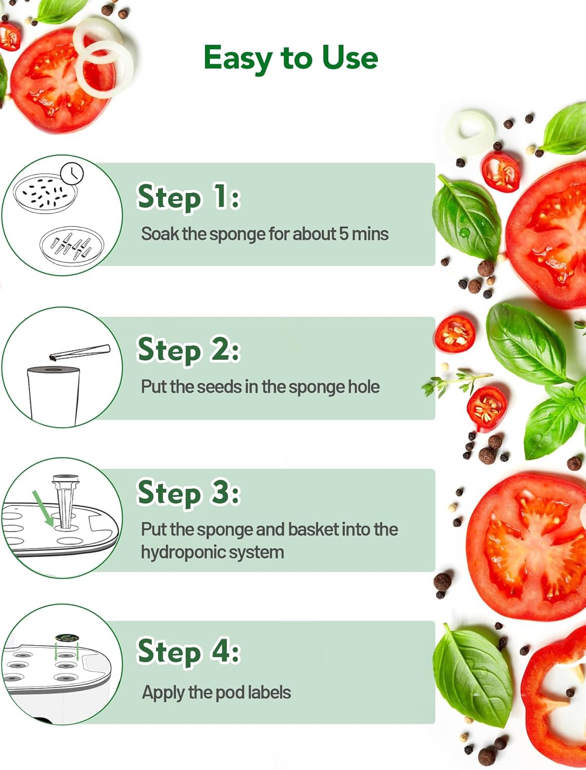 • Easy to Use: Before use, soak the sponge for about 5 minutes, then place the seeds inside and stick the pod label. Please store all unused replacement growing sponges in a dry place.